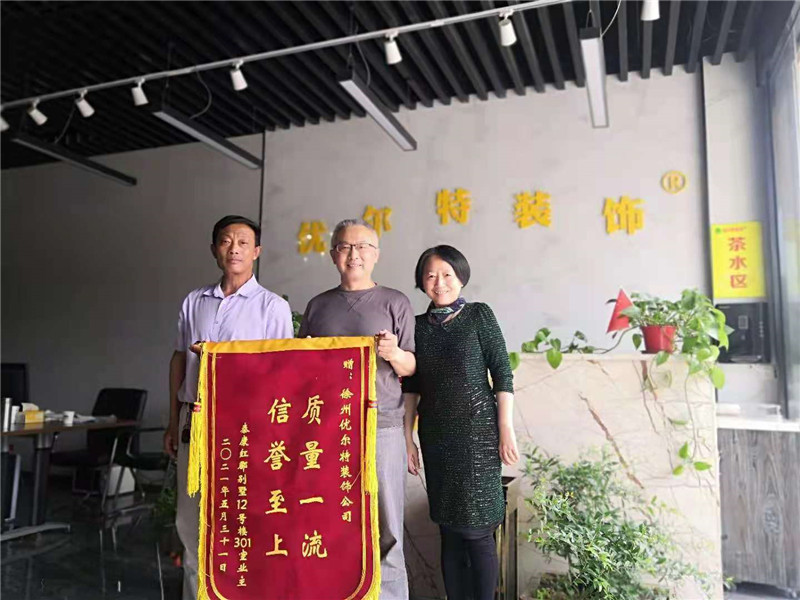 • 優爾特裝飾被工商管理局認定為“零投訴”單位,局領導親自頒發給優爾特裝飾董事長黃加忠牌匾及證書